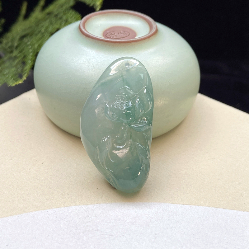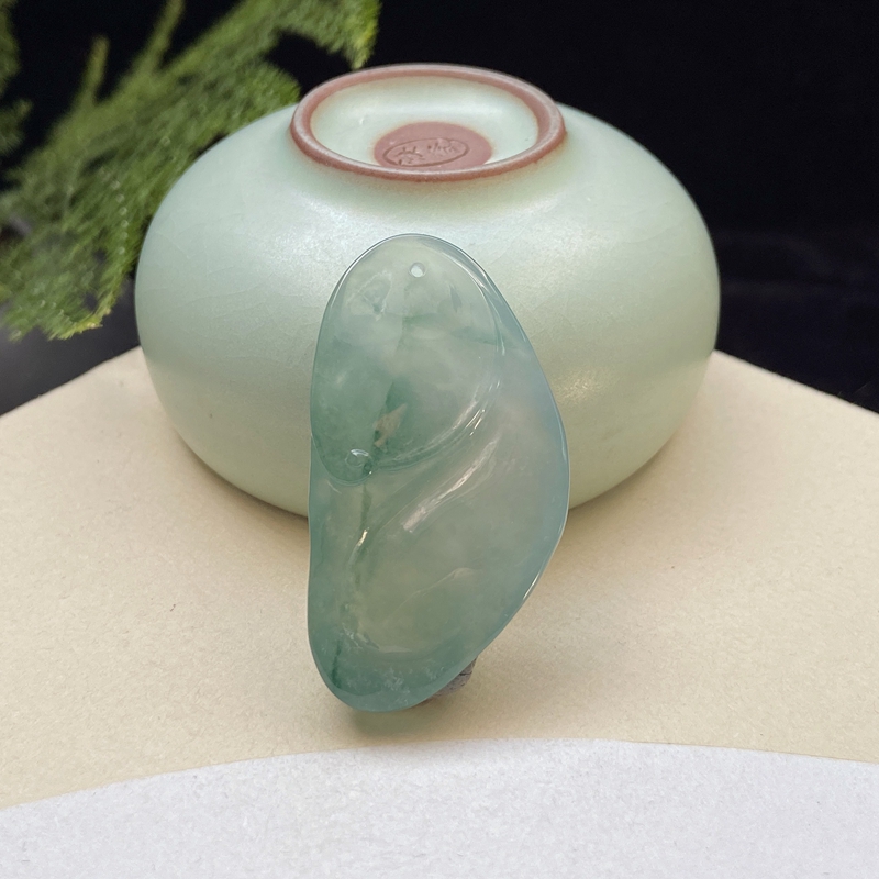 【名 称】 冰种浅绿翡翠年年有余吊坠