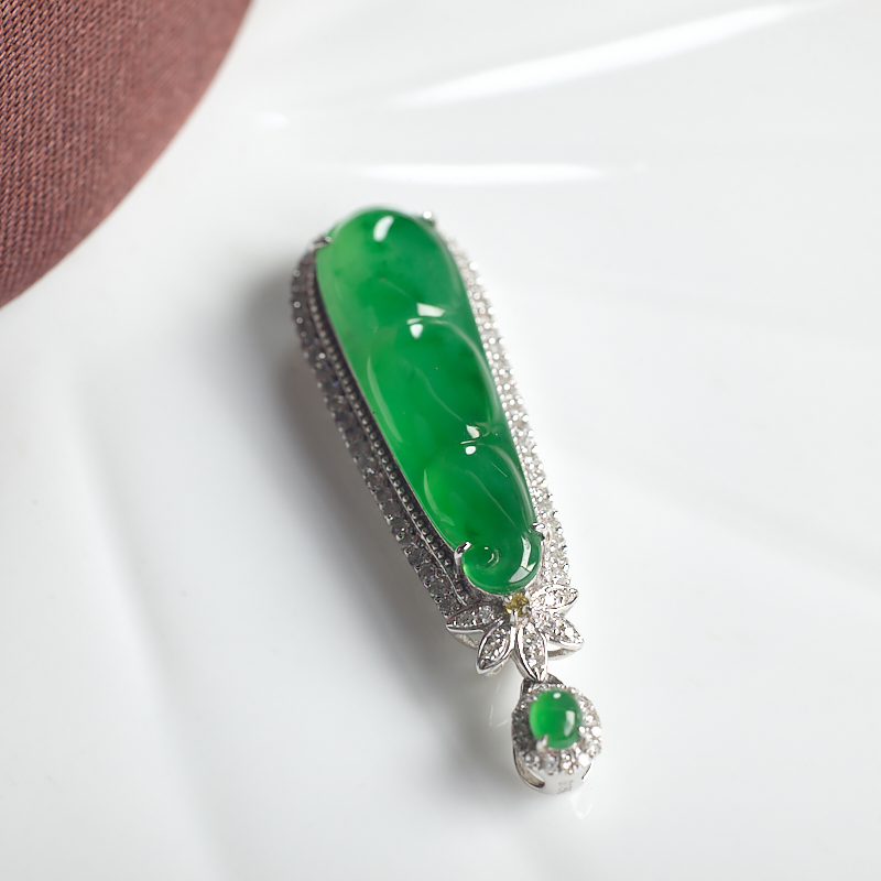 【名 称】 18K糯冰种翠绿翡翠福豆吊坠