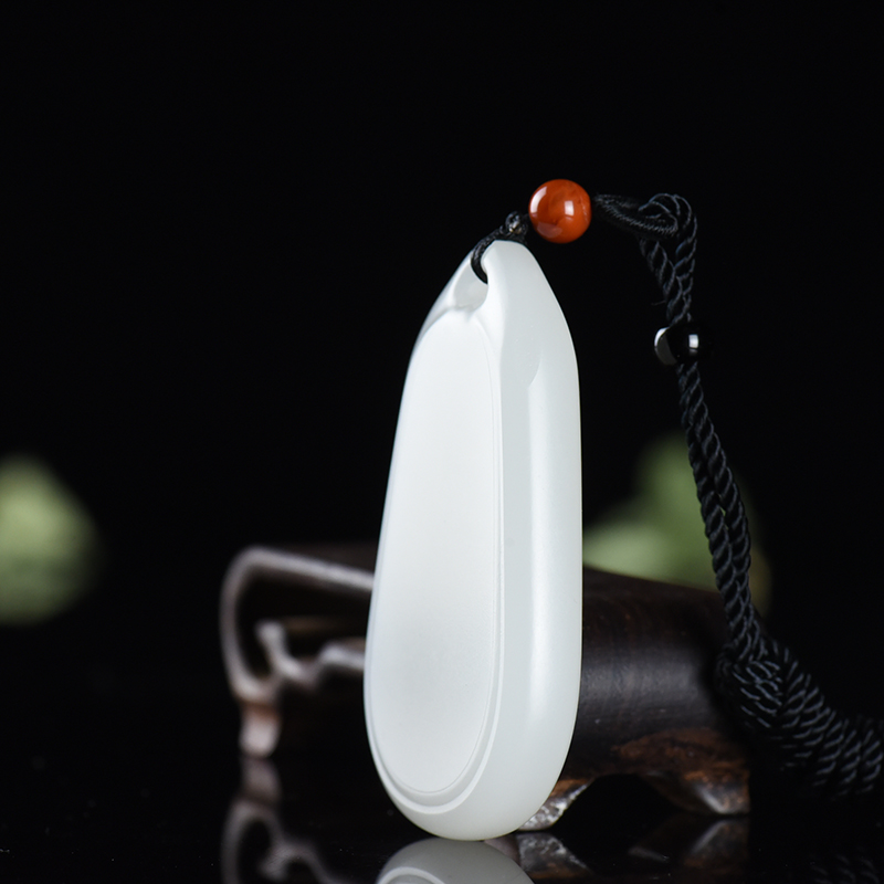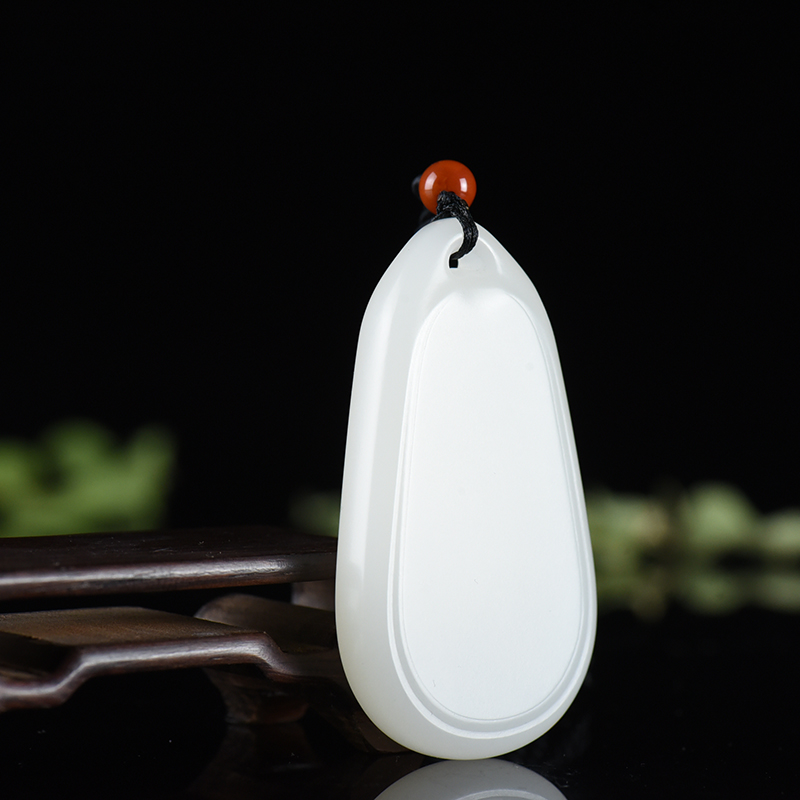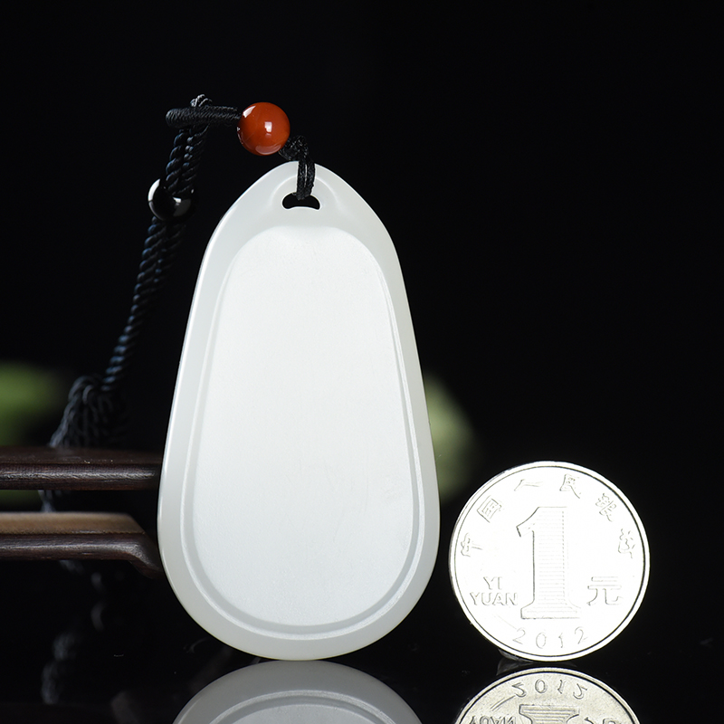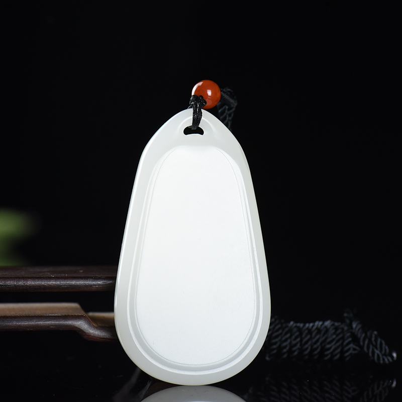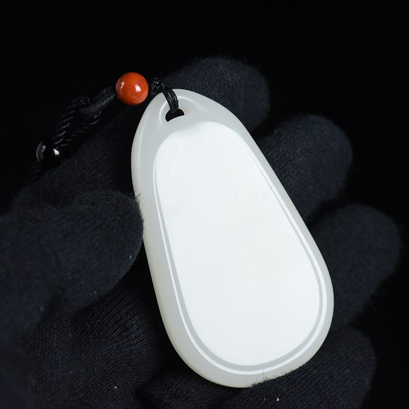【名 称】 山流水料和田羊脂白玉无事牌吊坠
