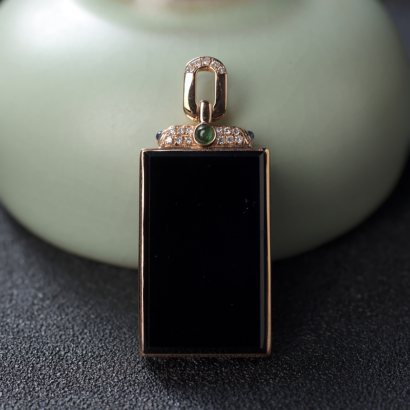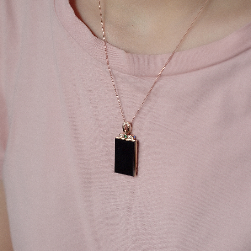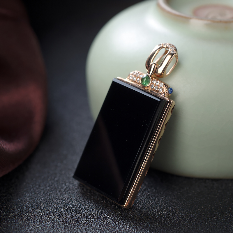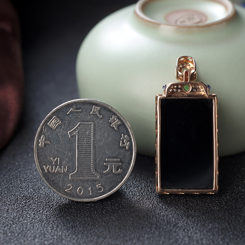 【名 称】 18K冰种墨翠方牌吊坠