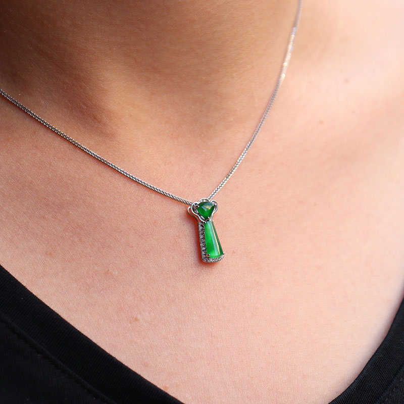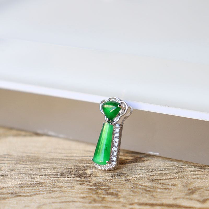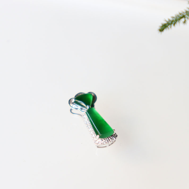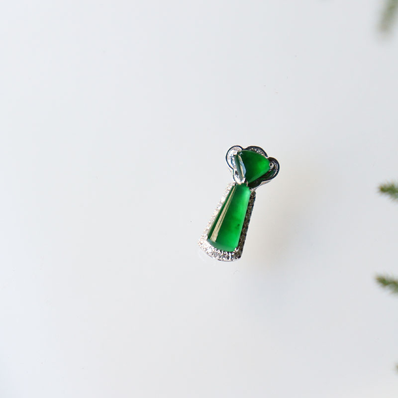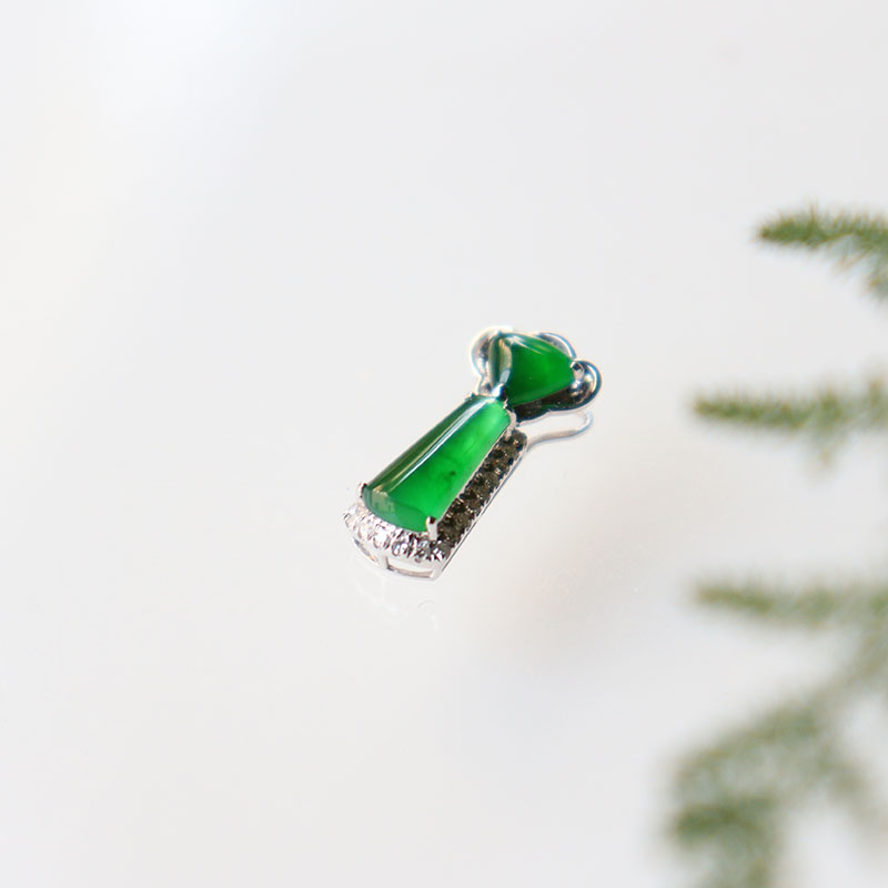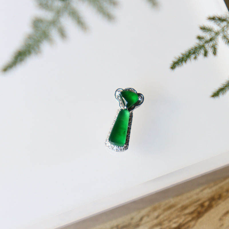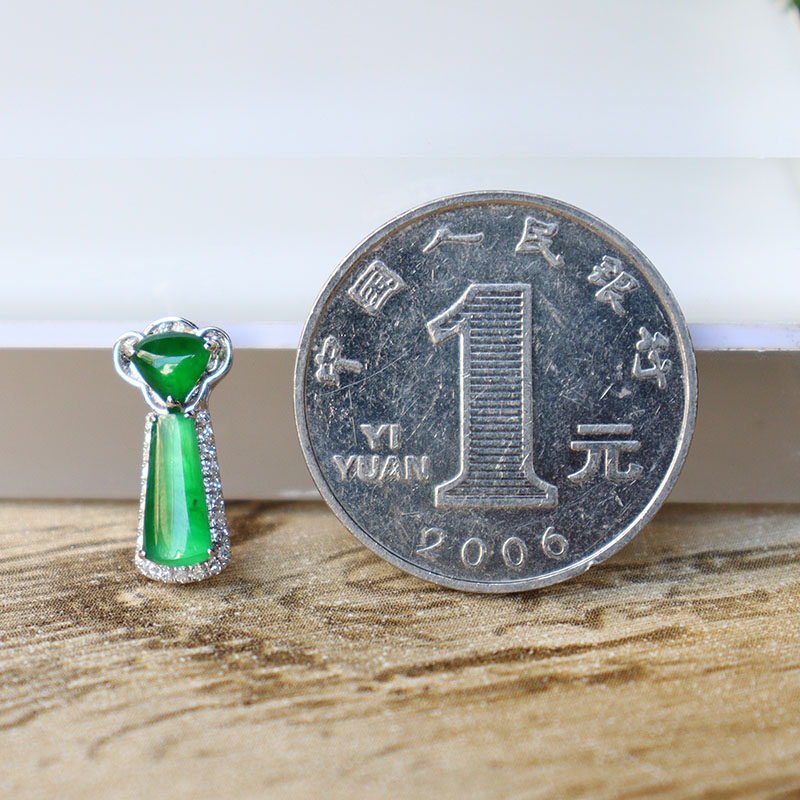 【名 称】 18k冰种翠绿翡翠无事牌吊坠