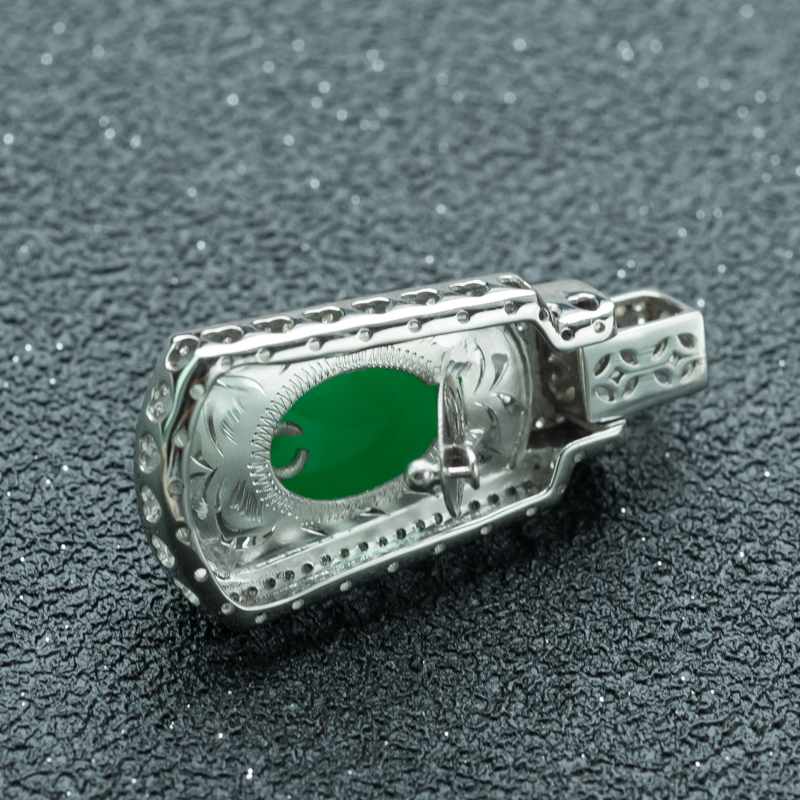 【名 称】 18K糯冰种翠绿翡翠无事牌吊坠