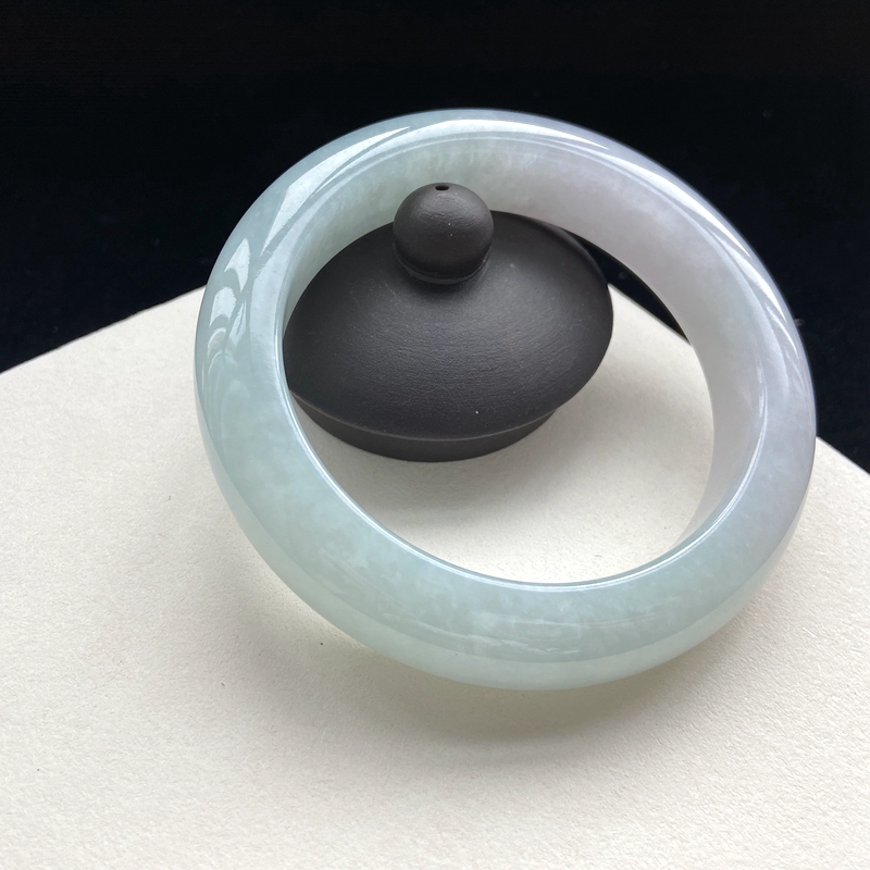 【名 称】 57mm糯冰种淡绿翡翠平安镯