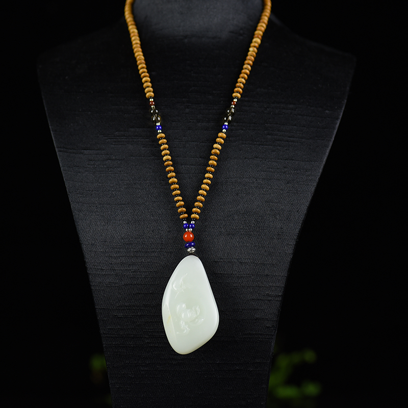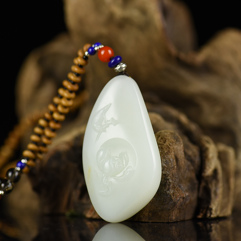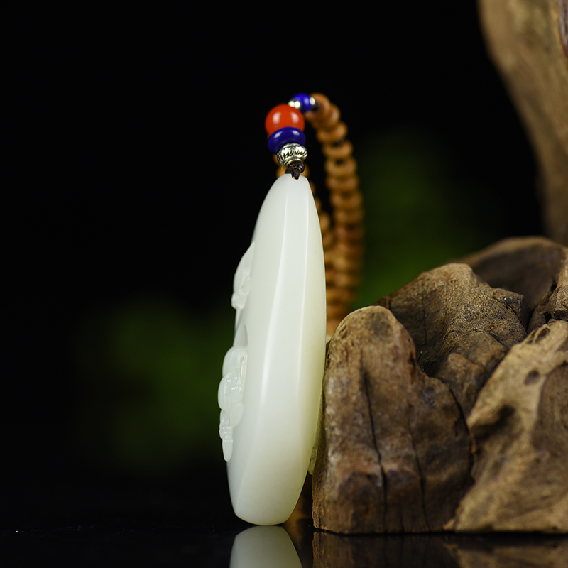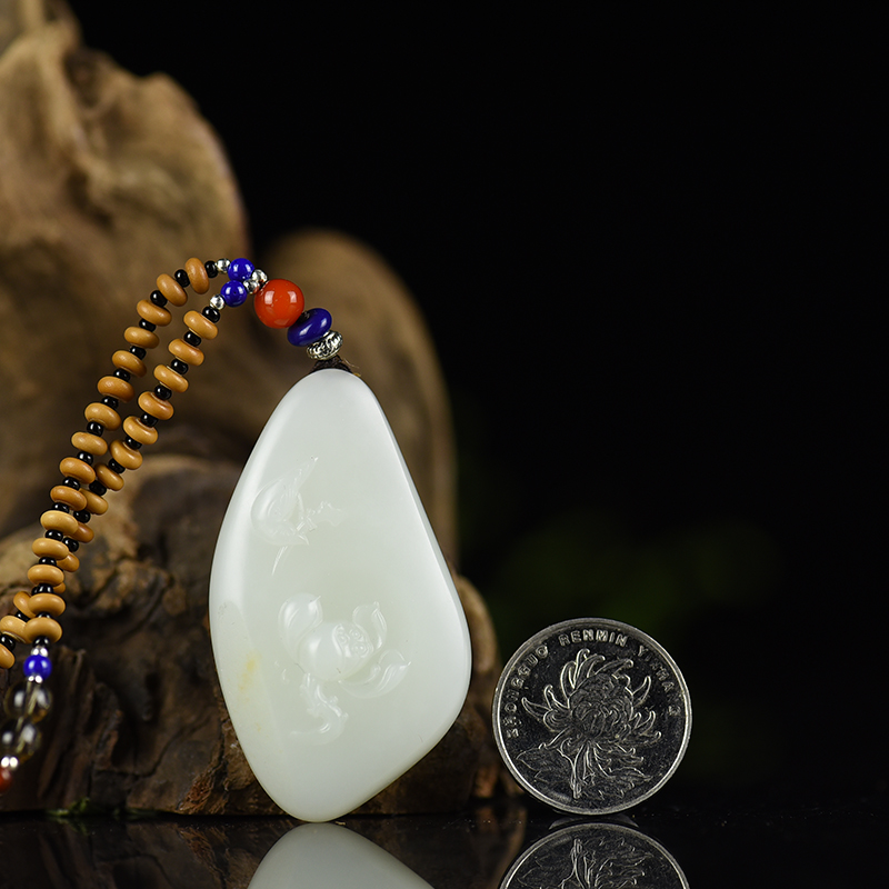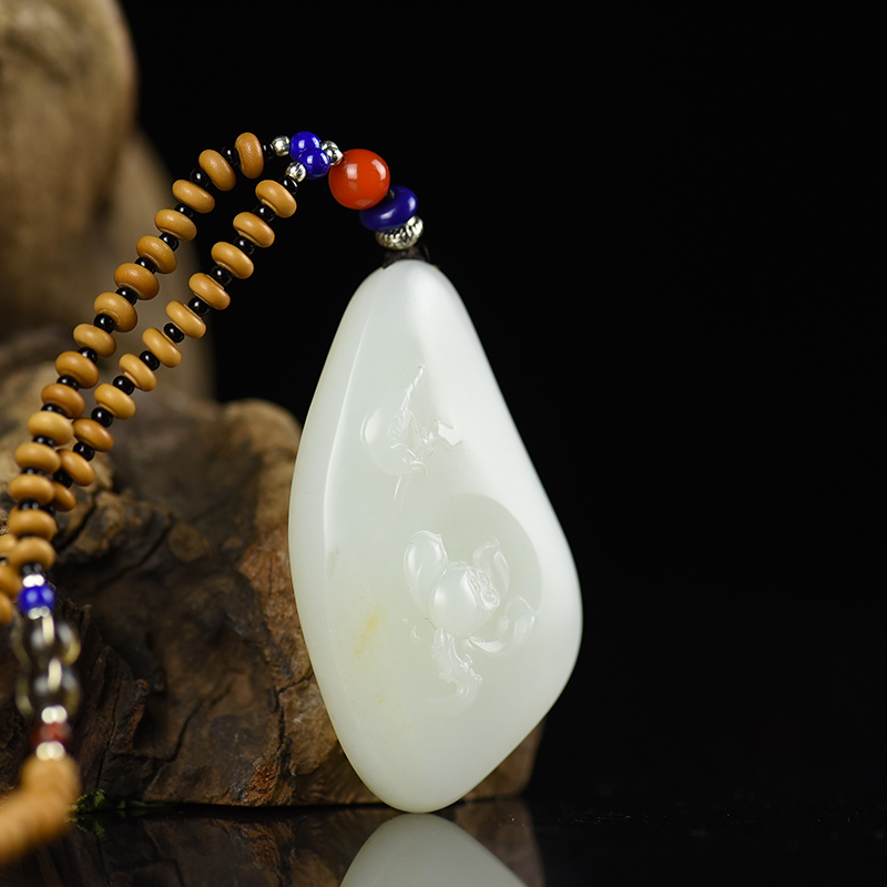 【名 称】 籽料和田白玉荷塘清趣吊坠