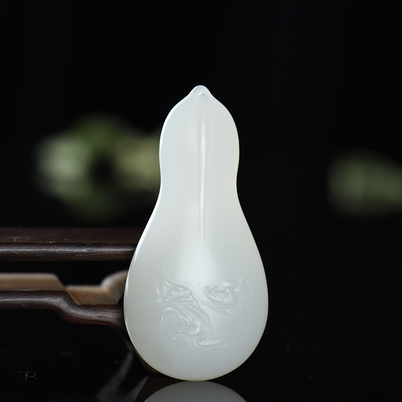 【名 称】 山流水料和田羊脂白玉荷塘吊坠