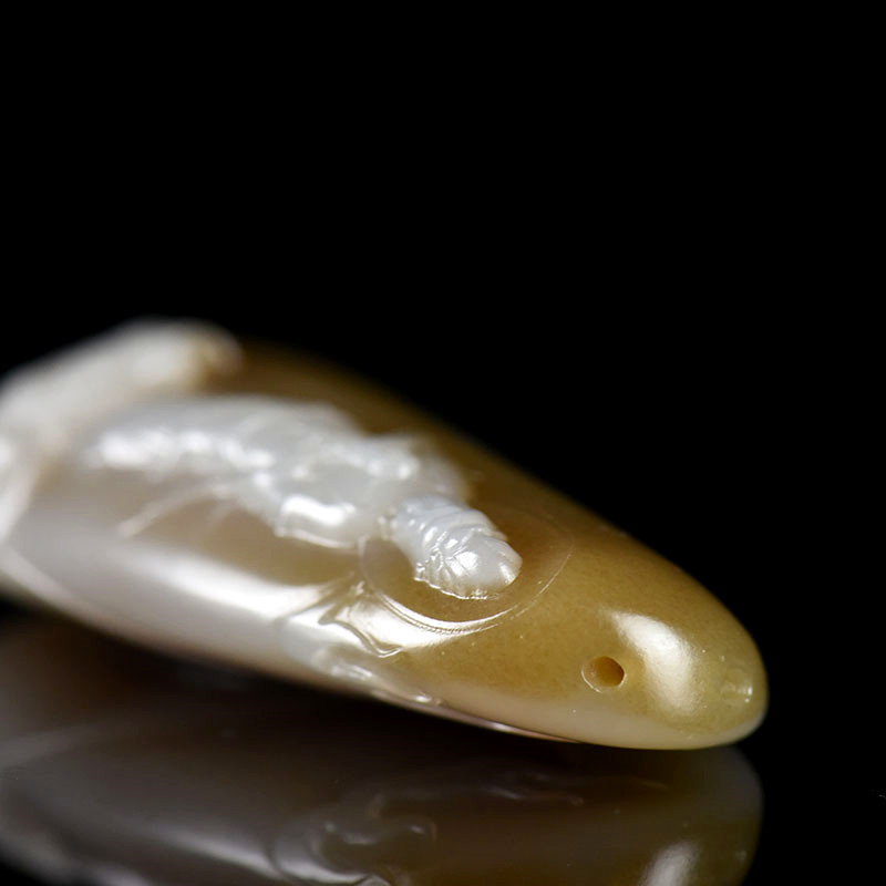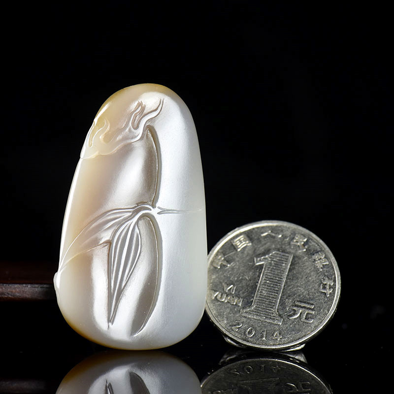 【名 称】 俏色山料和田糖白玉观音吊坠