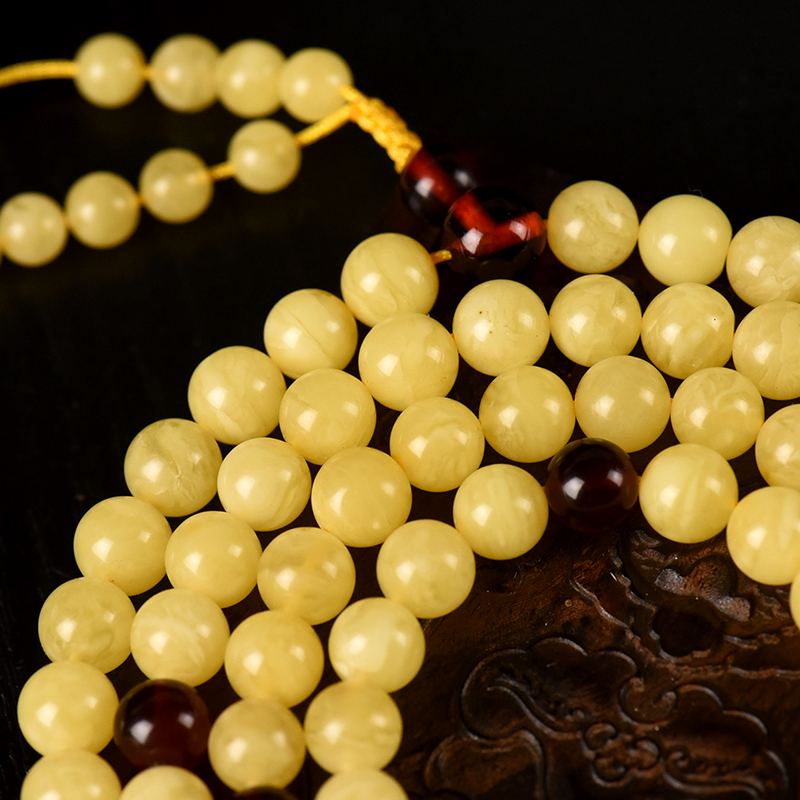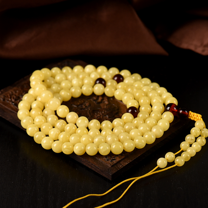 【名 称】 7mm鸡油黄蜜蜡108佛珠
