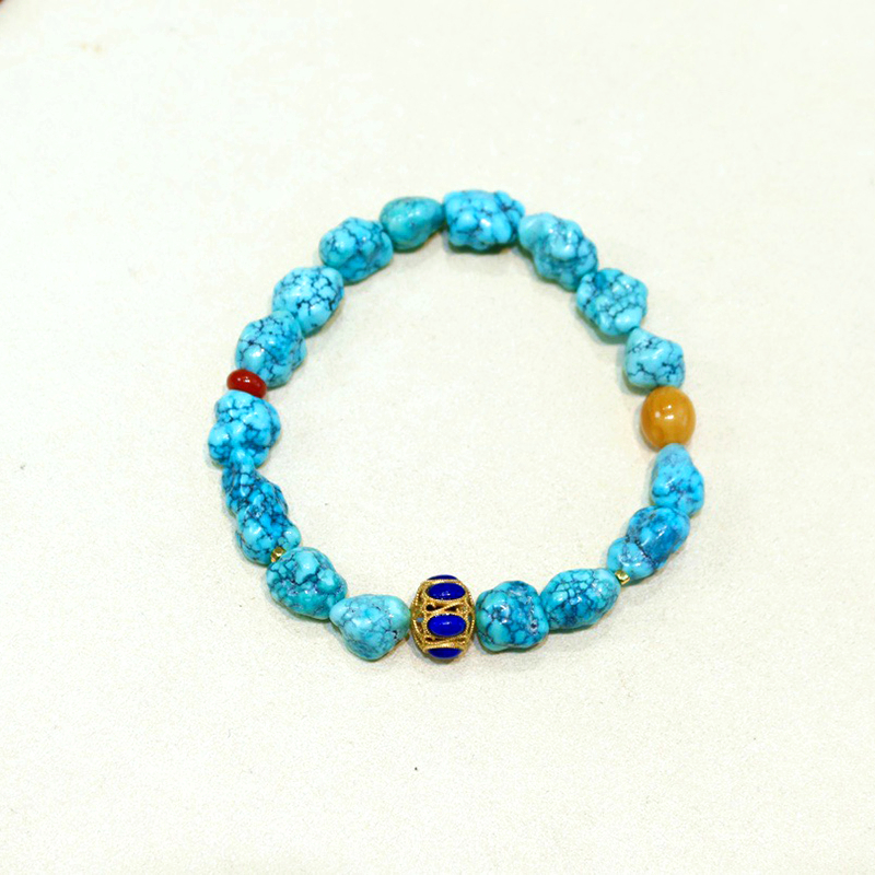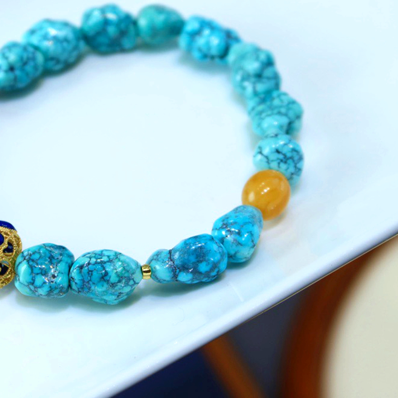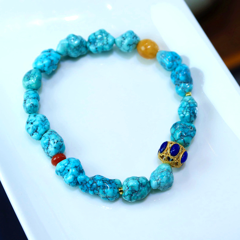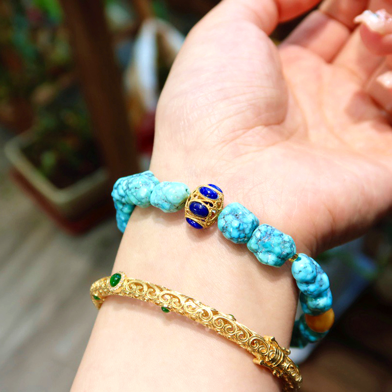 【名 称】 中高瓷蓝色绿松石随形单圈手串