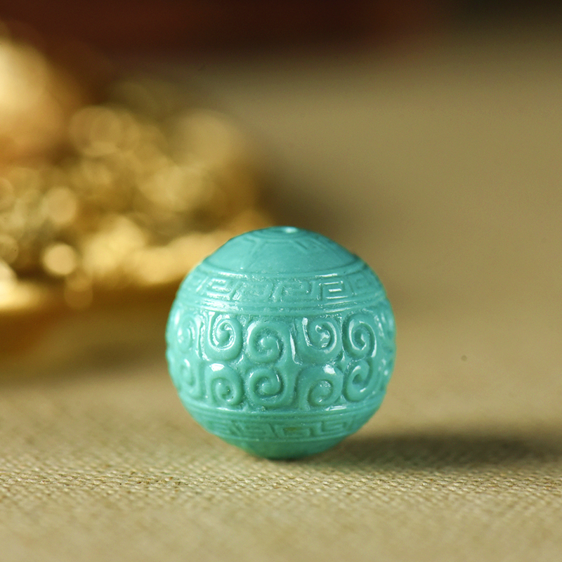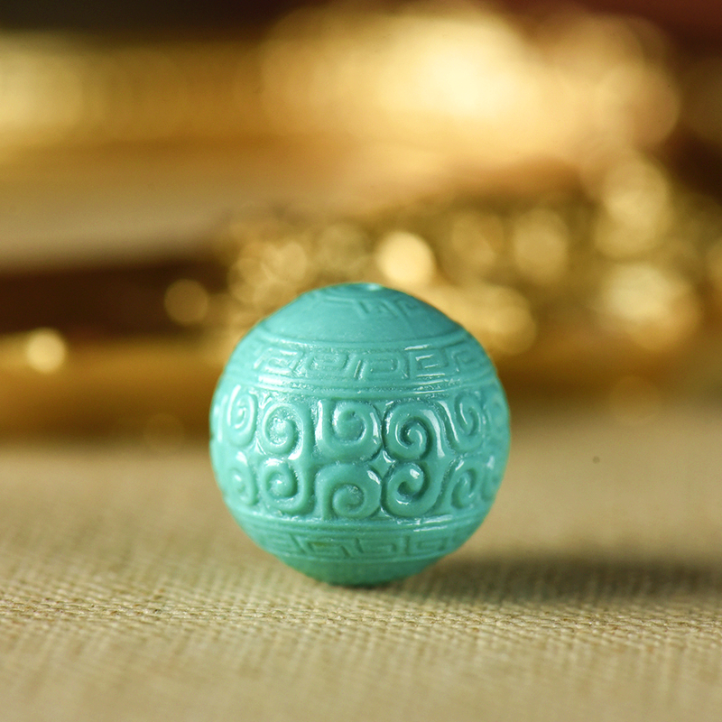 【名 称】 15mm中高瓷蓝色绿松石回纹珠圆珠配件