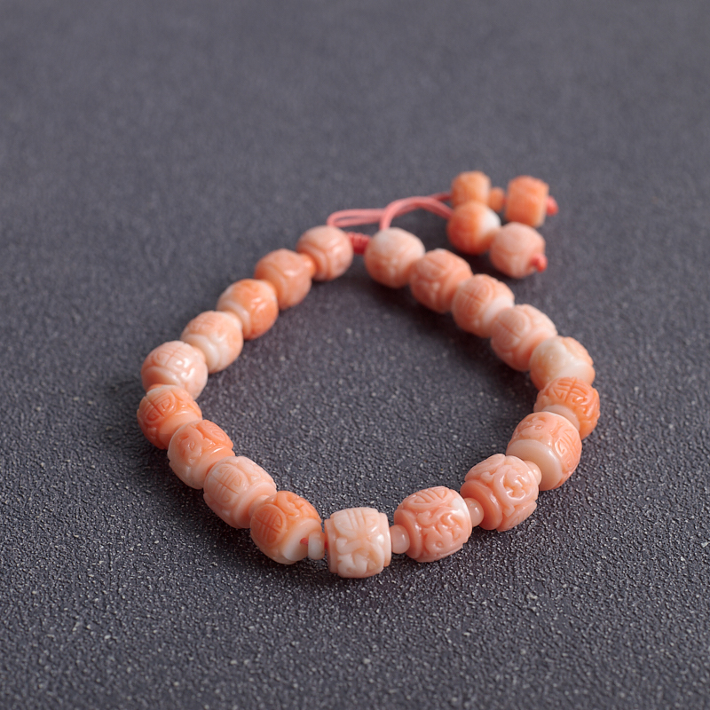 【名 称】 MOMO珊瑚仿古龙桶珠单圈手串