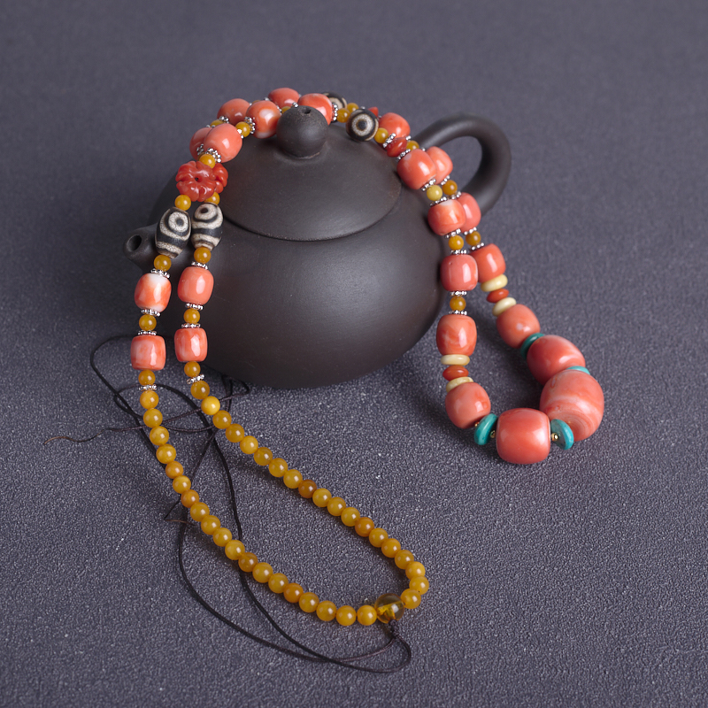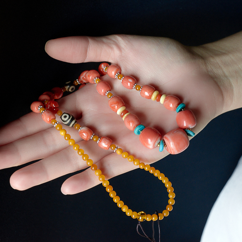 【产品描述】 配饰:绿松石、南红、蜜蜡、金珀、银饰、装饰品