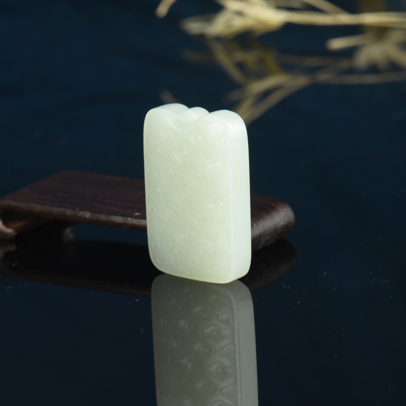 【名 称】 籽料和田白玉云纹无事牌吊坠