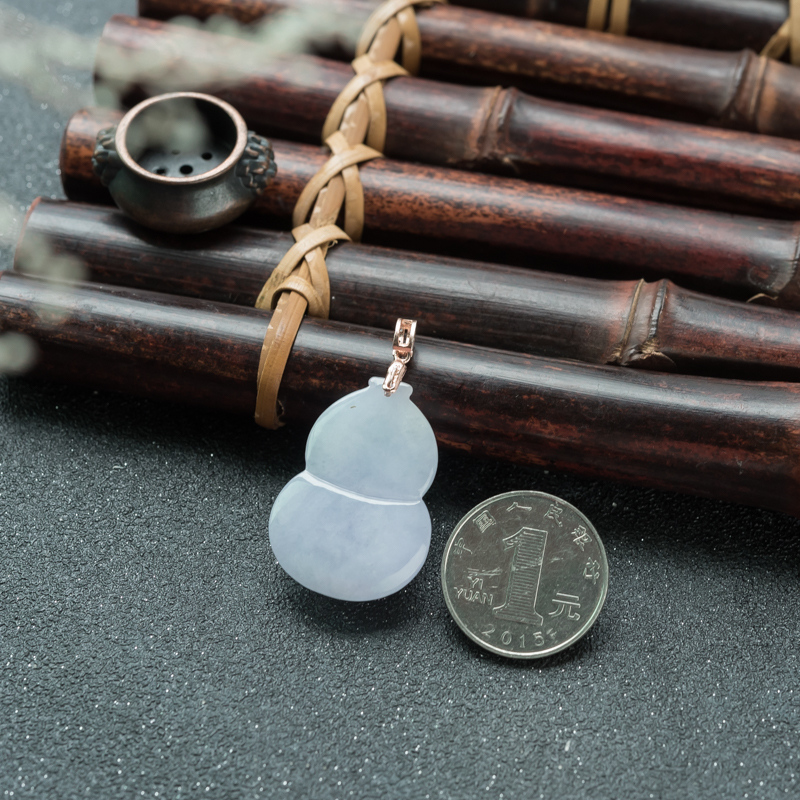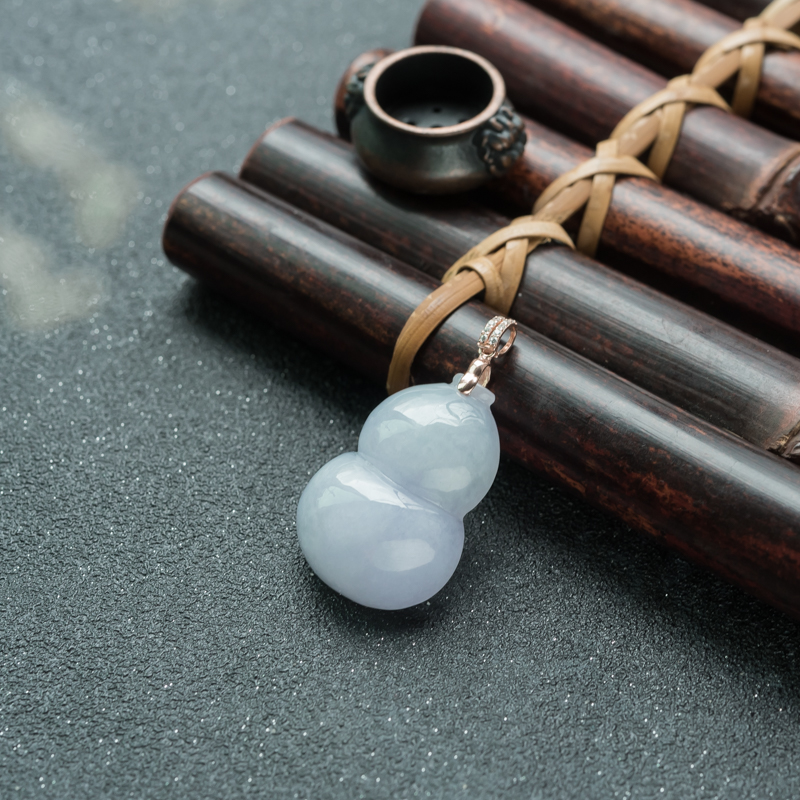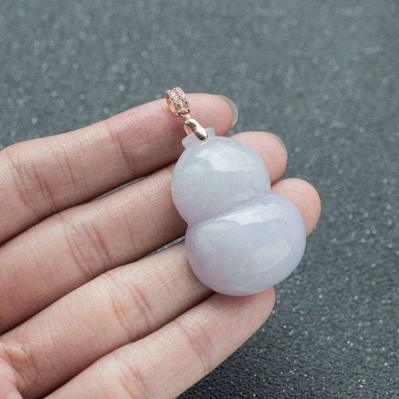 【名 称】 银镶糯种浅紫翡翠福禄吊坠