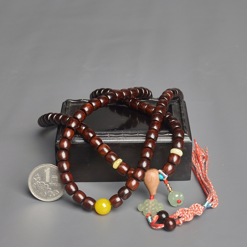 【尺 寸】 尺寸约单颗珠径7.7mm厚6.7mm全长80cm珠数108颗
